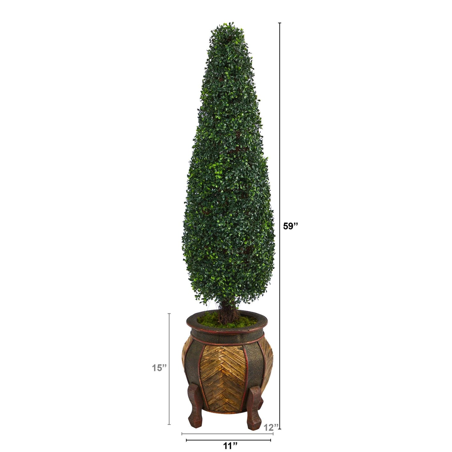 Escape to an elegant European summer villa with this perfectly trimmed Boxwood Topiary Artificial Tree – that requires zero maintenance. Always make a great first impression with a medley of lush, glossy leaves manicured in a rectangular shape. Enhance your curb appeal by placing in your back yard, front yard, garden or patio and be transported to an enchanting oasis. Standing at 59", from a decorative planter (included in height), this Boxwood Topiary Artificial Tree will curate with other topiaries for a cohesive look. We carry boxwood topiaries in larger and smaller sizes for an elegant touch.