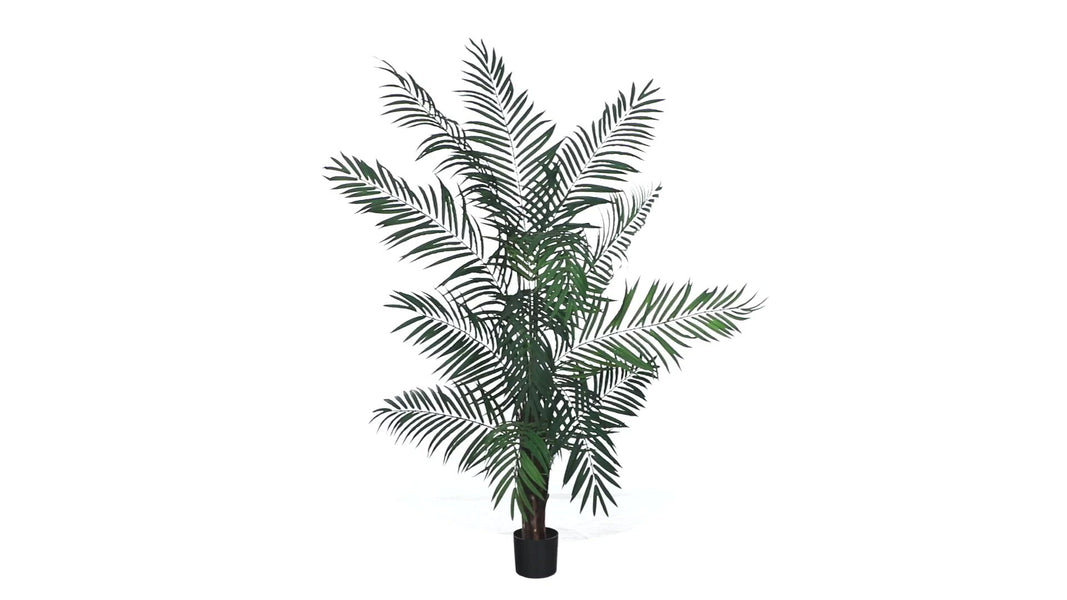 Here's one of the most realistic looking palm trees you will ever find (unless you're on a tropical beach, of course!) This stunning Areca palm tree is tall (6'), full (with 12 trunks and more than 600 leaves ready to sway in the ocean breeze), and is ready to stand proud in your home or office. The best part is you don't need a tropical environment (or even water) to keep it looking beautiful. Makes a perfect gift as well.