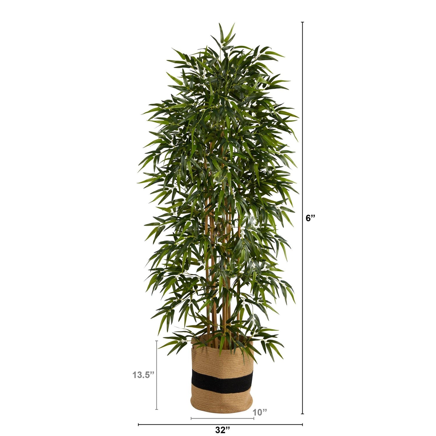 Bring a piece of the Far East into your living areas with this Bamboo artificial tree. Synonyms to the Asian region transform your space into a serene oasis that'll take you on an adventure. Inspired by nature, lifelike leaves stem from multiple, staccato thin brown trunks. Standing 6" from a natural cotton planter (included in height), curate in tight spaces in need of some green foliage. Curate in a home spa, bathroom, bedroom, or living room.