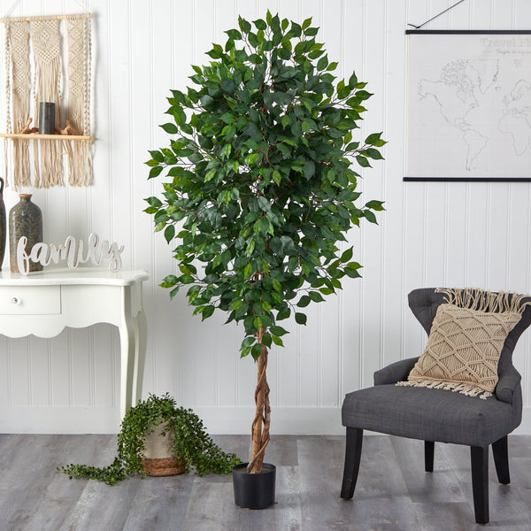 Standing at 6-foot, the artificial ficus tree would make a bold statement piece in any room. With an abundant amount of green leaves that hang over thin stems, the richness of the foliage will complement any dark mahogany furniture in a living room, like a bookshelf. Pair it with a wooden planter to help ease this perfect ornament into any established setup.
