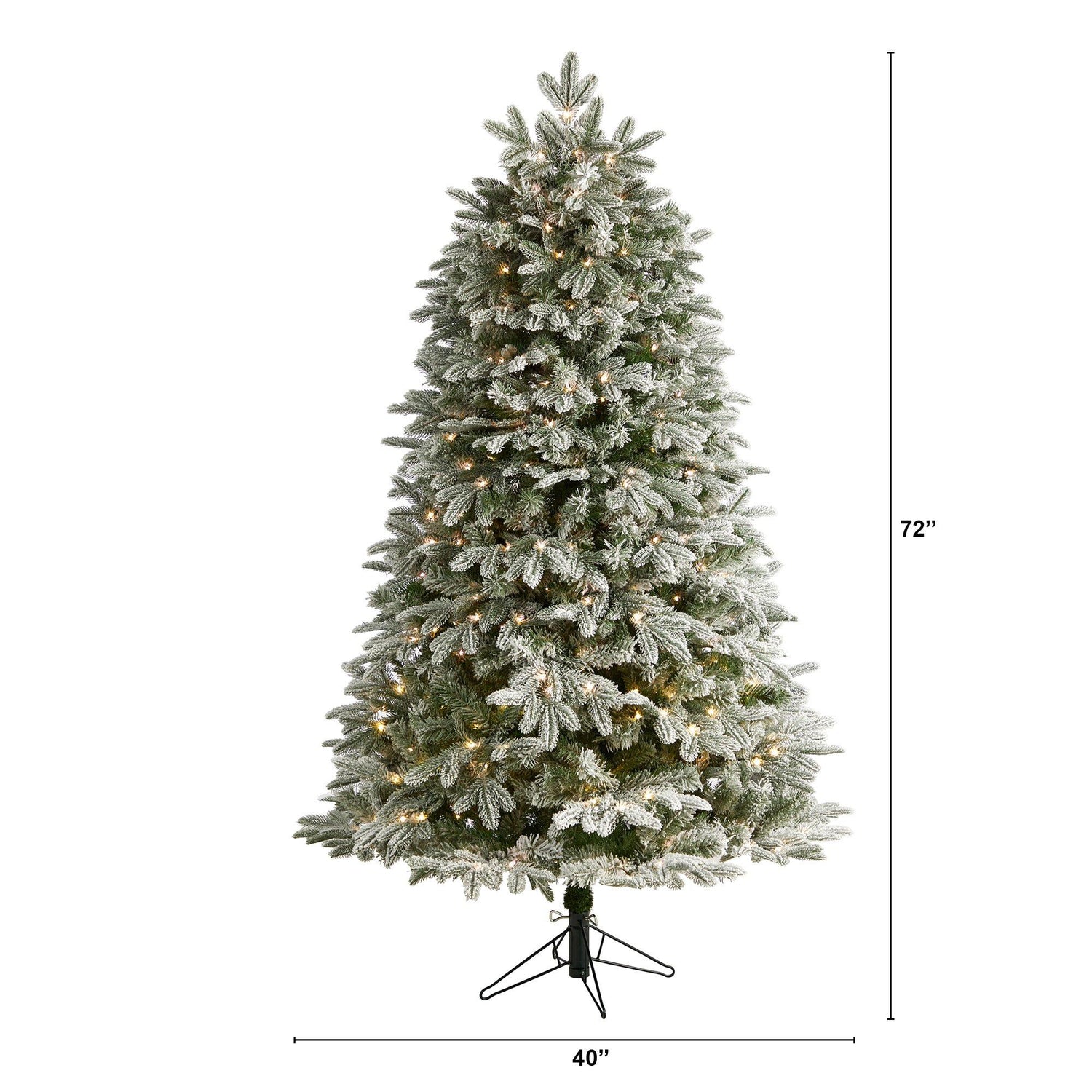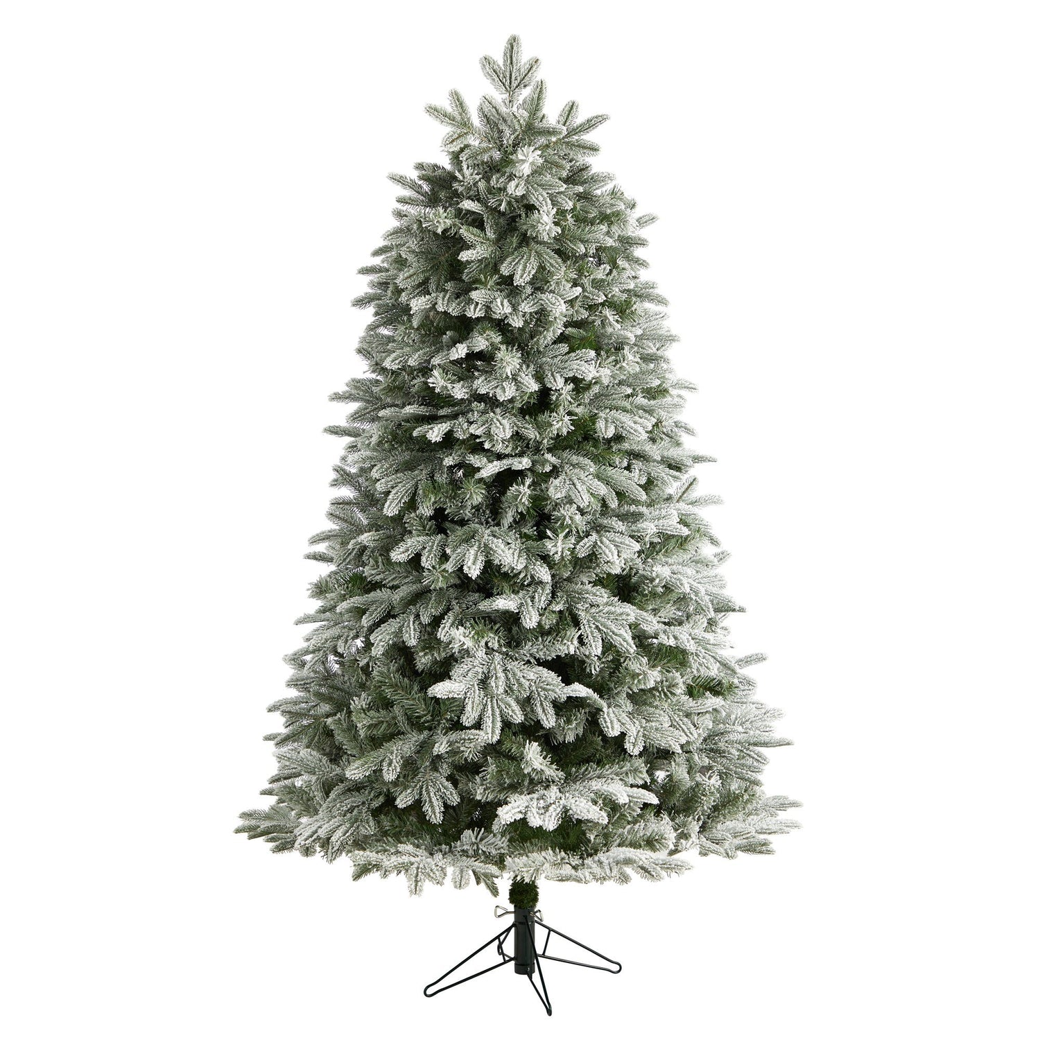 Evoke a winter-inspired Christmas this holiday with the help of this flocked artificial Christmas tree. Easy to build and entirely maintenance-free, it boasts a traditional silhouette of seasonal evergreens, made up of 881 easy-to-bend branches for showcasing all your personalized ornaments - fully flocked with faux snow to create a picture-perfect setting. Arriving pre-strung with 500 warm white LED lights, it also features 8 different light options (including Twinkle, Bursts, and Fade) to create a true holiday glow wherever displayed. Carefully stabilized on a metal stand, this enchanting 6’ tall flocked artificial Christmas tree will undoubtedly be a focal point throughout the holidays, year after year.