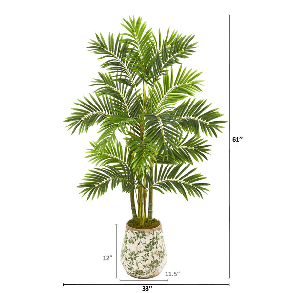Pop some color into your everyday environment with the help of this artificial areca palm tree featuring a rich canopy of bright, evergreen foliage designed from the finest materials. Standing 61” high from a floral planter, this silk tree is great for year-round display.