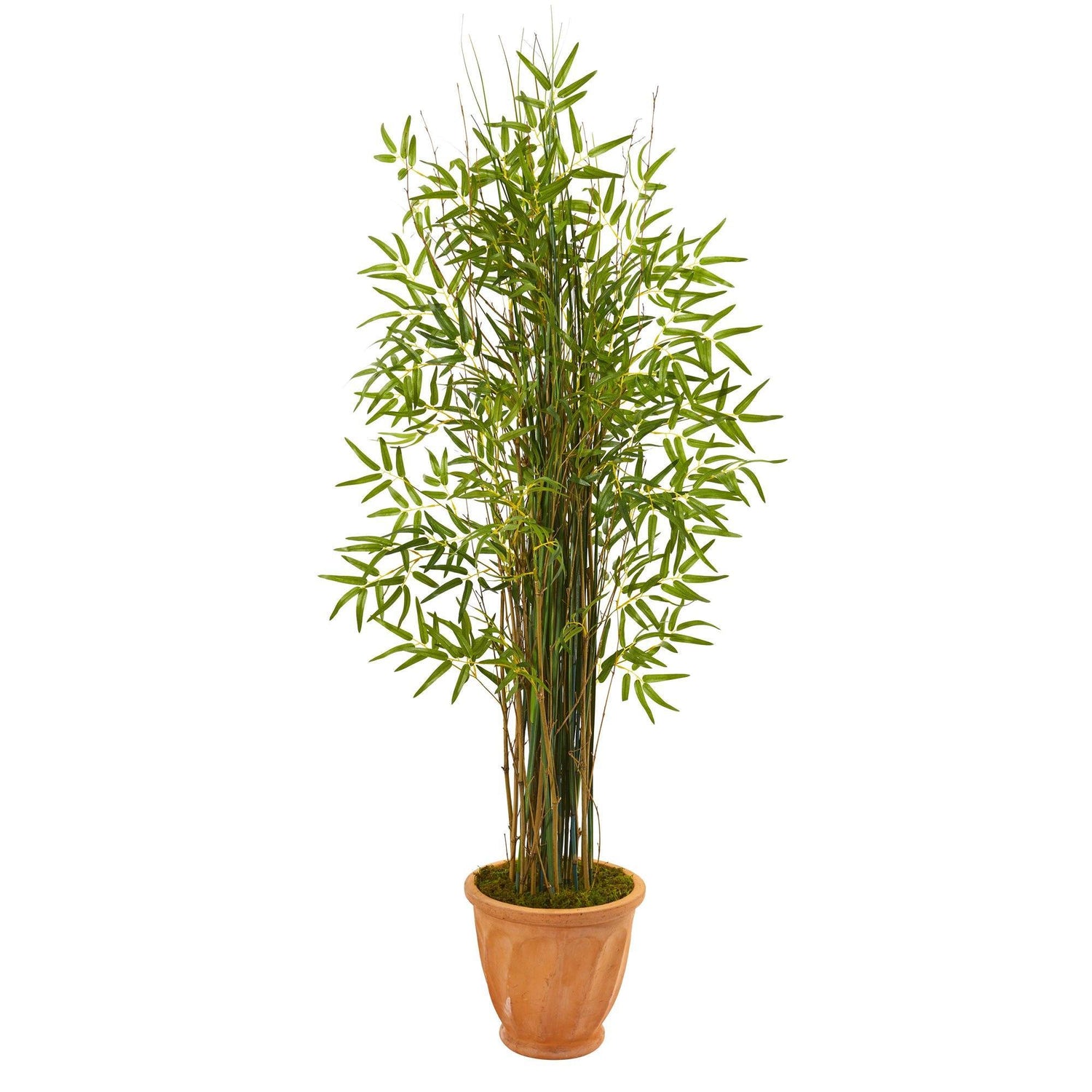 Brings a warm feel to any room with this artificial bamboo plant featuring an abundance of lifelike foliage, carefully designed in naturally occurring hues and qualities. Standing 64” high from a terra-cotta planter, it can help create your own sanctuary indoors.