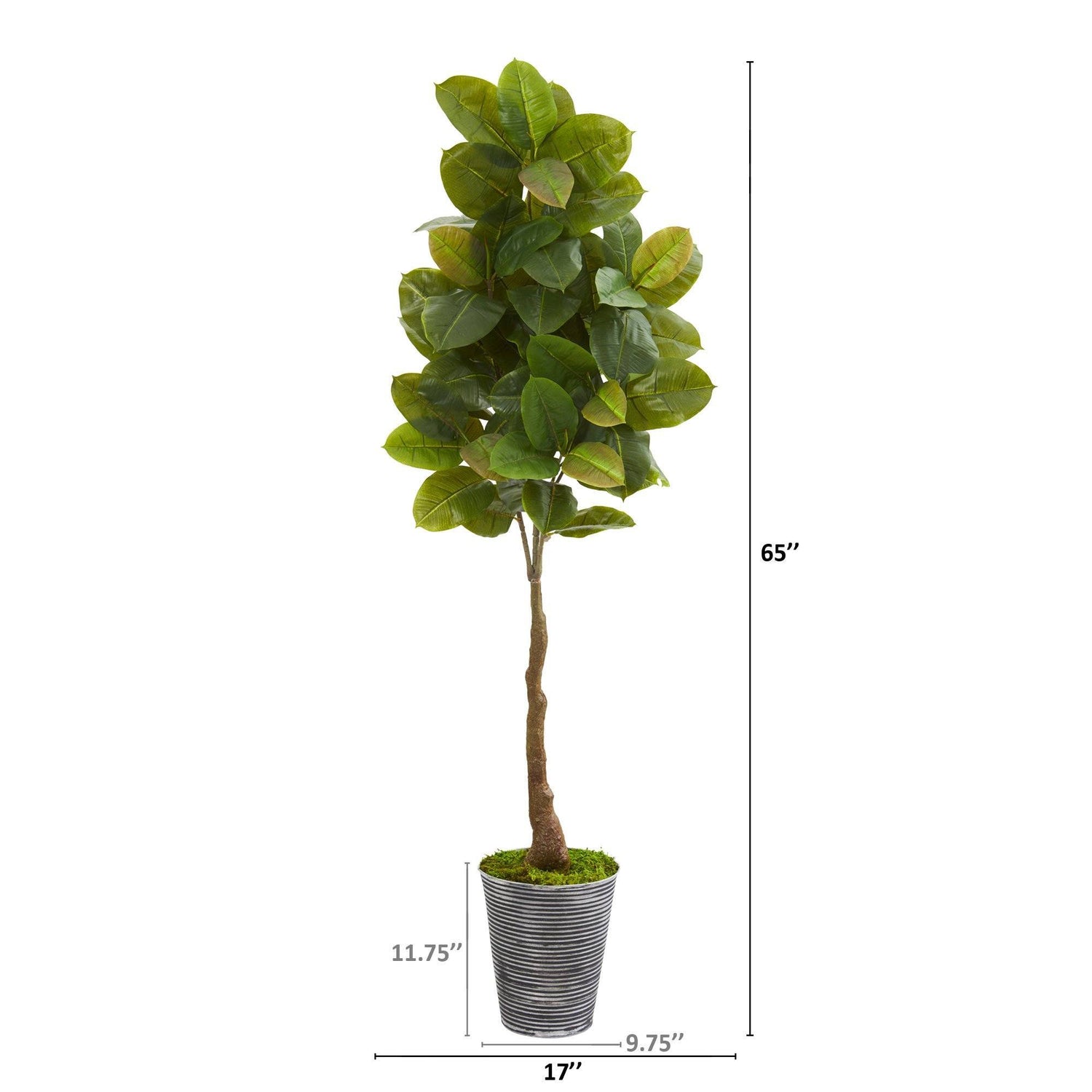 Accent your home with earthly accents with the help of this artificial rubber leaf tree flaunting rich green leaves, intricately designed with realistic detailing that are authentic they feel real to the touch. Great for entrances or hallway, this 65” tall silk tree comes in a decorative tin planter for effortless display.