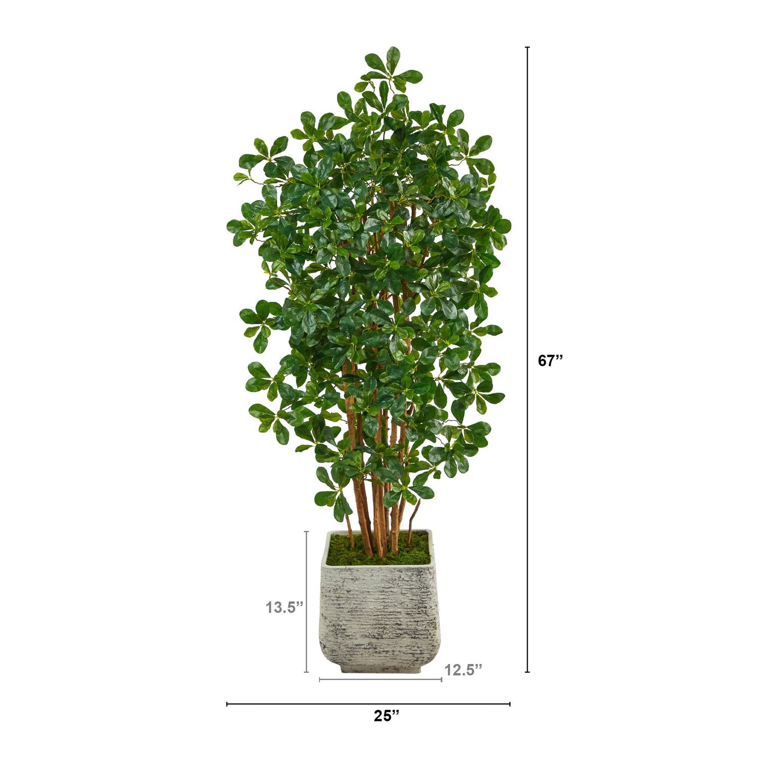 Transform your scenery into the dreamy summers of an enchanting land with this Black Olive Artificial Tree. Whimsical twirling trunks and easy-to-bend branches house 1365 scattered leaves for a bushy look on top. Standing at 67", from its white planter (included in height), bring different textures, shapes, and depth to spaces in need of a focal point. Decorate in apartments, kitchen nooks, nurseries, and bathrooms for a soft, delicate touch.