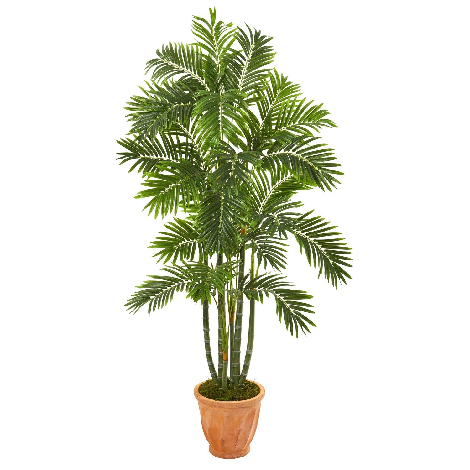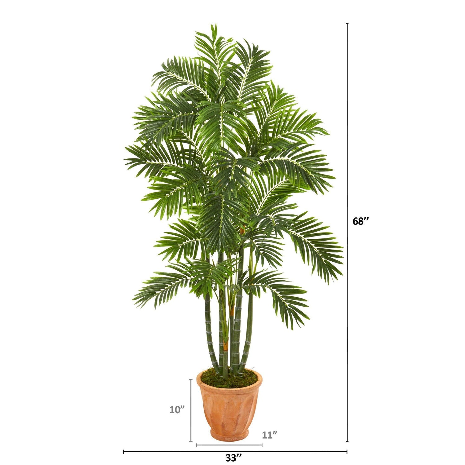 Create your own tropical oasis with this artificial areca palm tree featuring a lush canopy of evergreen foliage, carefully designed from the finest materials. Contained in an orange planter, this 68” tall silk tree would spruce up even the tightest spaces.