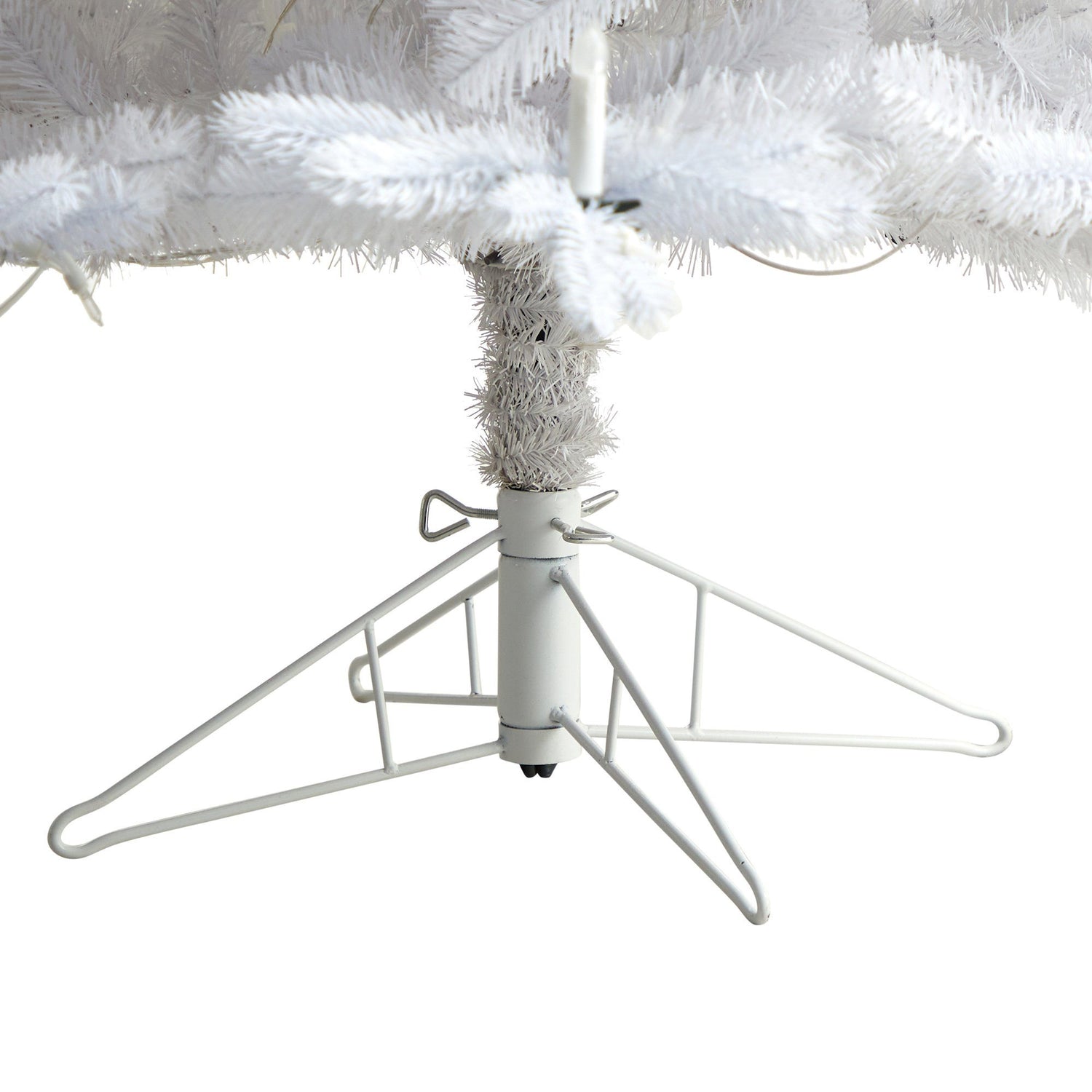 Complete a winter-inspired Christmas decor scheme this holiday with the help of this White Artificial Christmas tree. Completely maintenance-free, this all-white fake Christmas tree boasts an array of soft looking foliage made up of 1703 bendable branch tips to accent with your own personalized ornaments, all beautifully designed in a palette of snow white. Pre-strung with 900 LED lights, iluminate any area.Carefully stabilized on a metal stand and standing 7.5’ tall when in full display, this white beauty will undoubtedly create a stand-out focal point all throughout the holidays - year after year.
