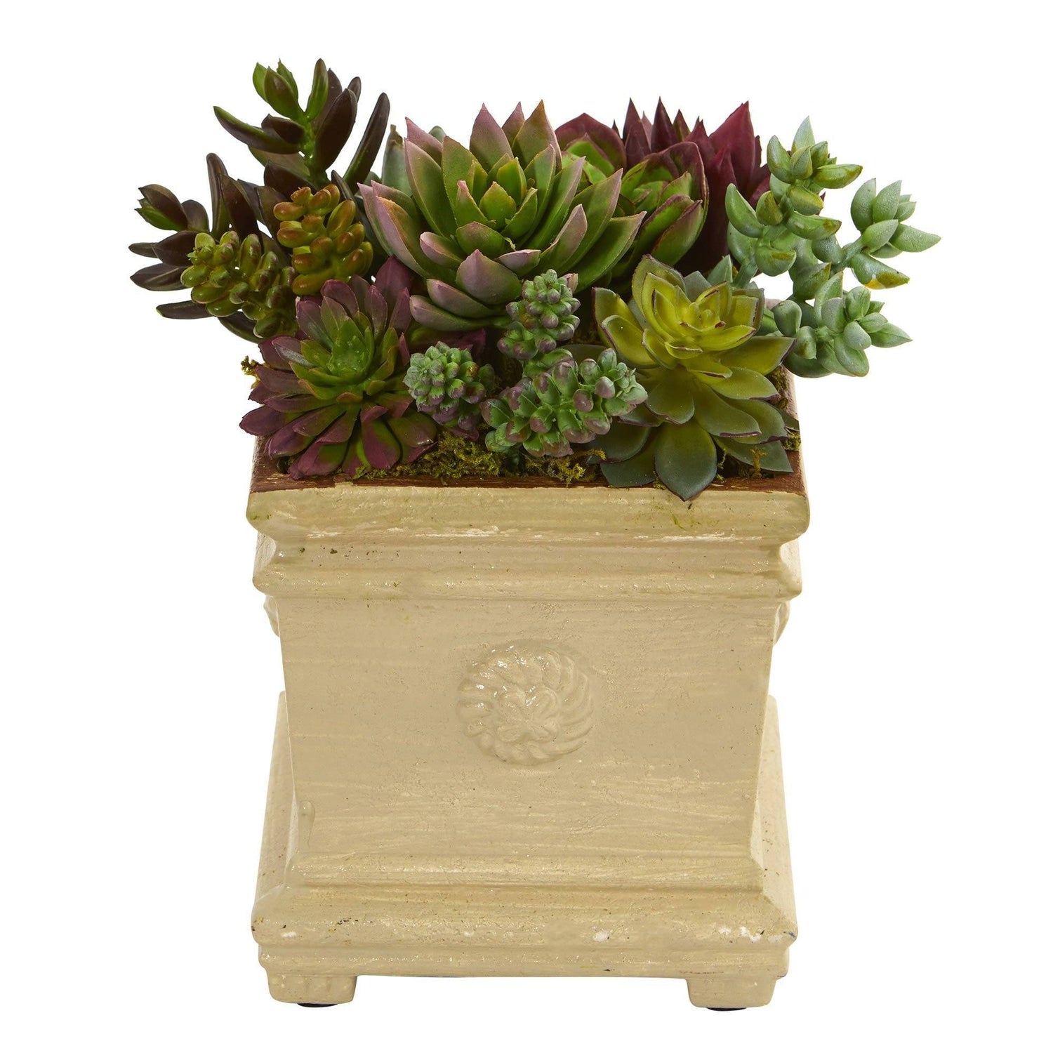 Ranging from deep saturated burgundy to lighter green leaves, the two colors of this artificial mixed succulent plant are perfectly blended together and don't over shadow one another. This faux plant adds a sense of calm and tranquility to any home or office space.