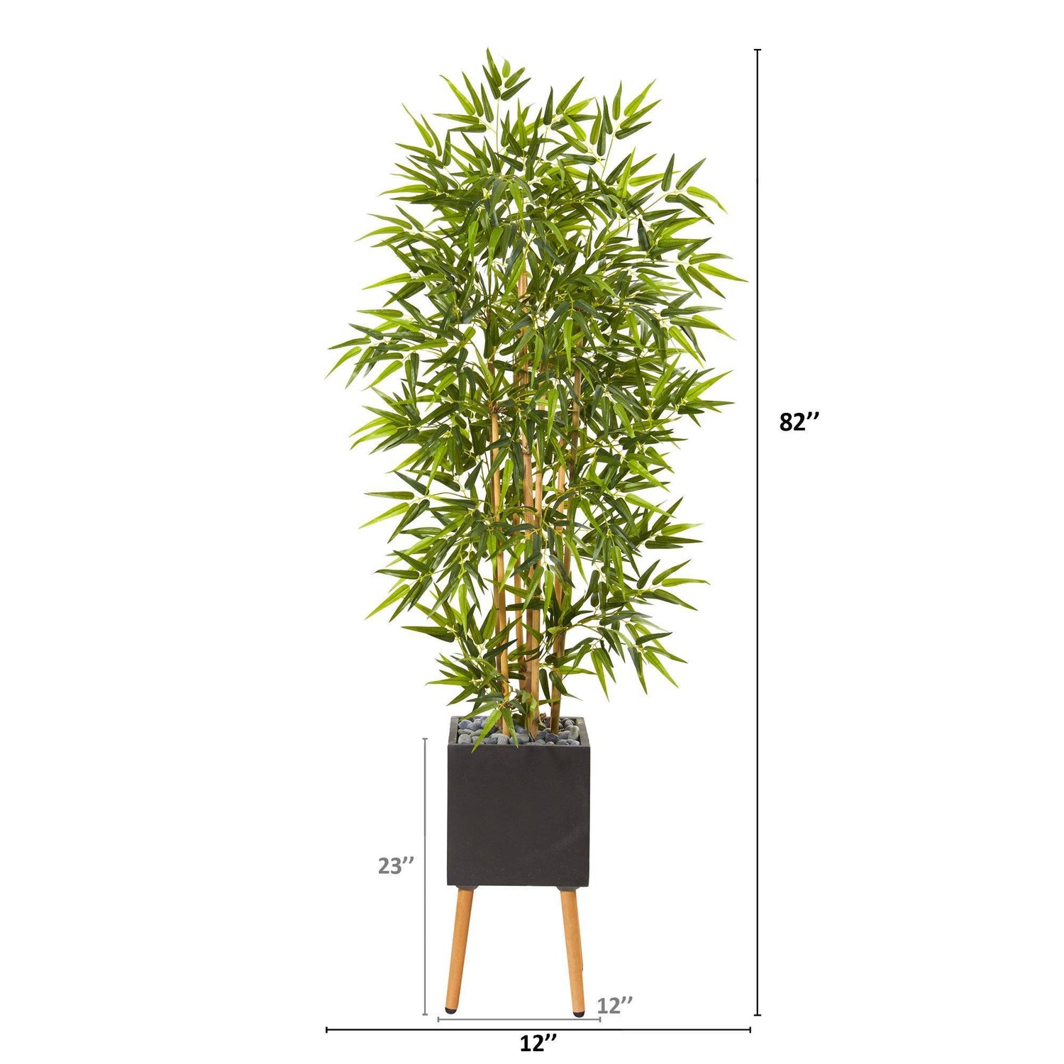 Brings a warm feel to any room with this artificial bamboo tree designed from the finest materials to showcase naturally occurring qualities throughout its realistic foliage. Standing 82” from a black planter, this silk tree requires absolutely no maintenance or upkeep.