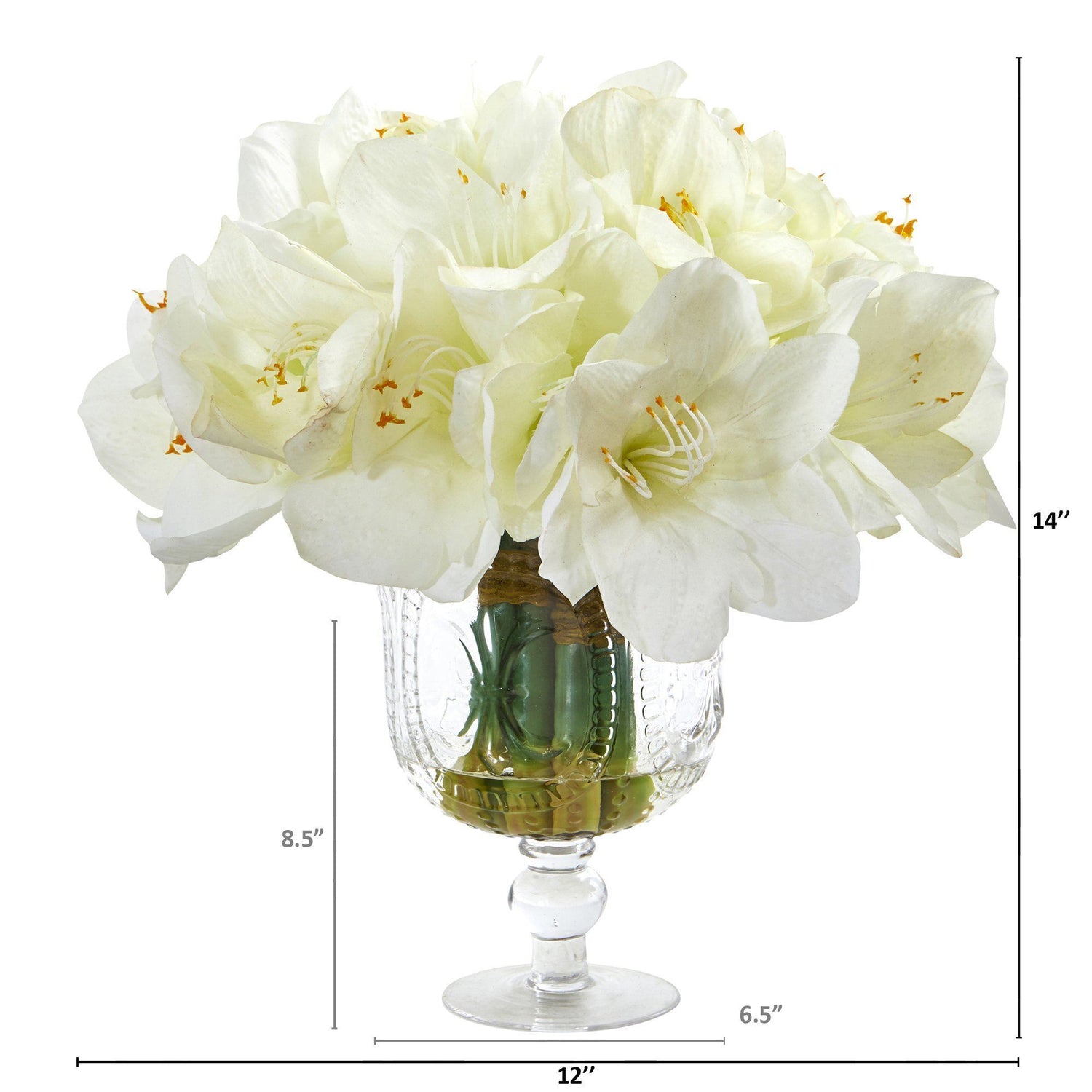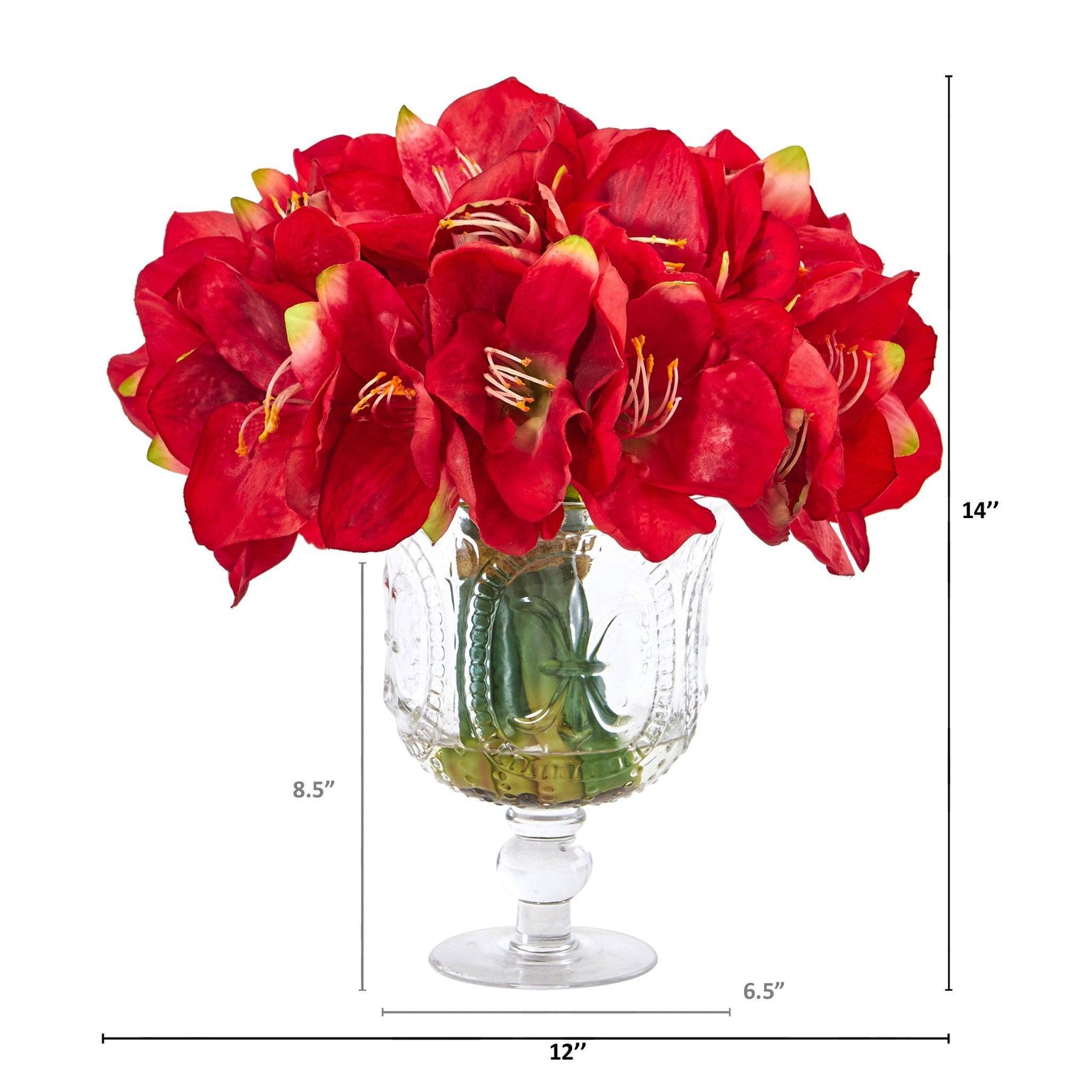 Simple beauty knows no limits with this artificial arrangement featuring bold, lifelike amaryllis blossoms in bright, rich hues. An enchanting accent wherever displayed, it reaches 14” high from its royal vase.