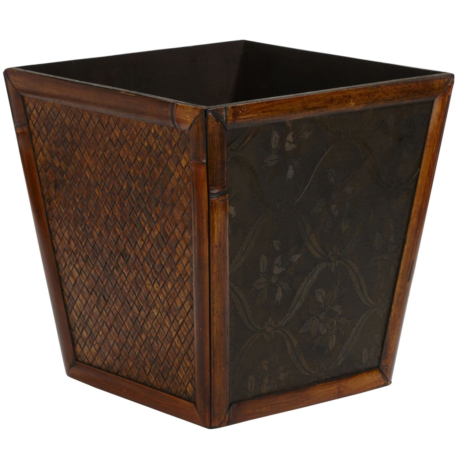 In a set of four (to maximize your decorating potential), our set of two-patterned planters is sure to delight. One side is decorated with a raised cross thatched design in a rich variety of dark burgundy and light browns; while its neighbor is finished with a light charcoal gray floral pattern on a darker background. Both patterns are framed with a beautiful wine colored bamboo finish.