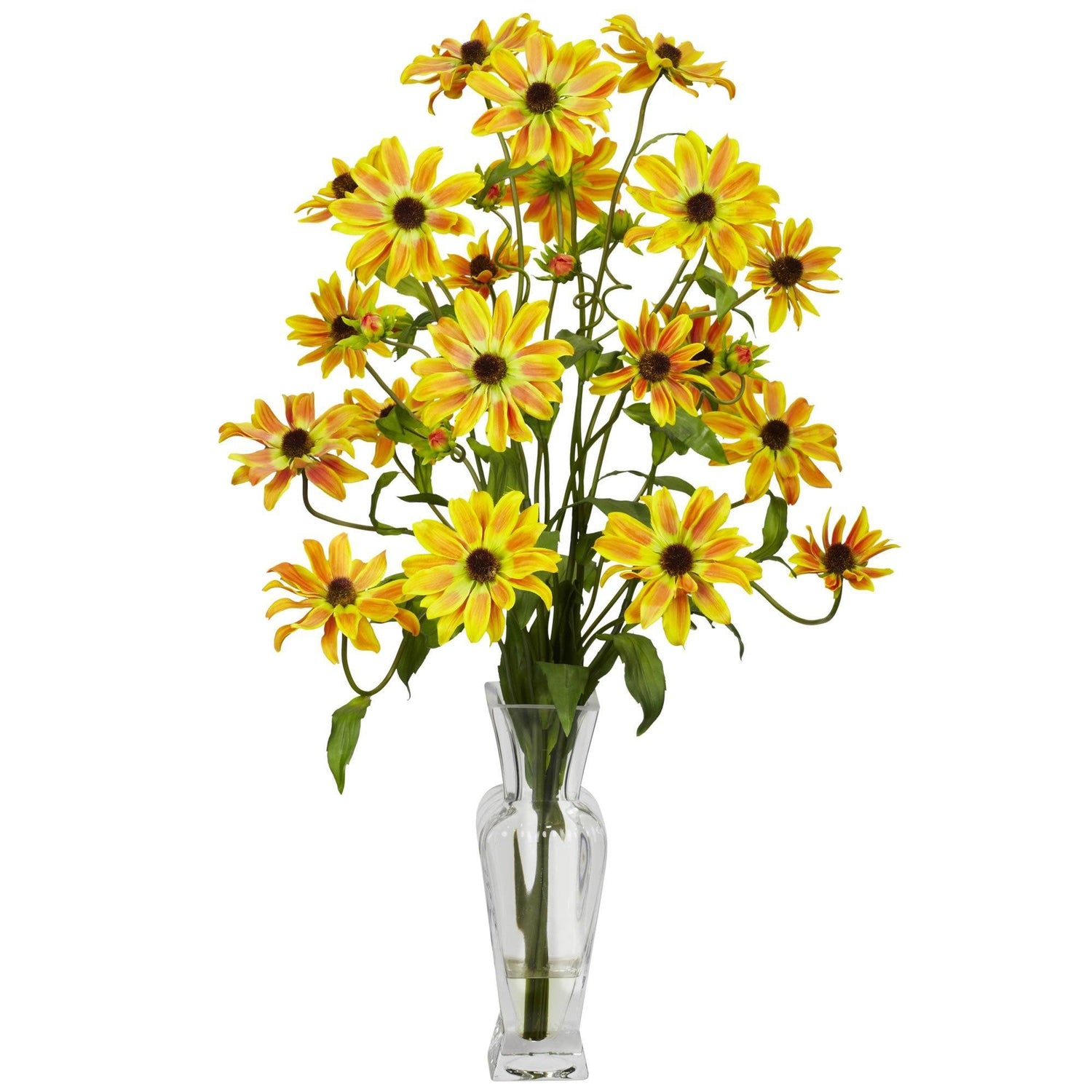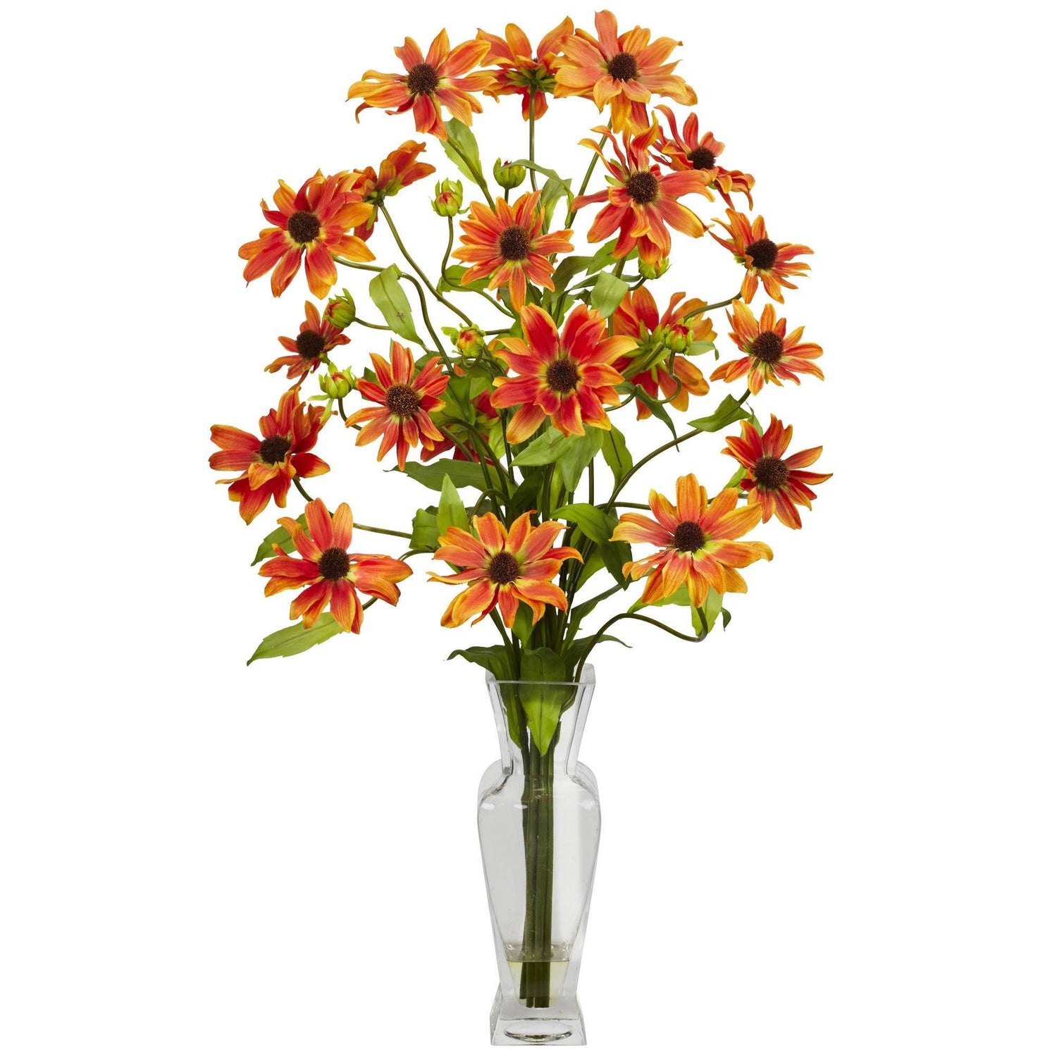 The appropriately named Cosmos plant – sporting the most vibrant colors of the universe - will add an energetic boldness anywhere on Earth. Each flower is a miniature sun giving different shades of color to any room. Together it’s a literal starburst of color! Standing at 27 inches high, this arrangement comes in a tall glass vase with “liquid illusion” faux water, thus giving the appearance of fresh vibrant flowers burning bright forever.