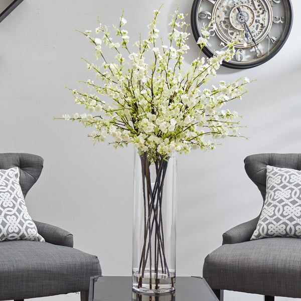 Every year, news outlets report the Cherry Blossoms blooming. And why not - this wonderful plant has been announcing Spring's arrival for centuries. And we've crafted the perfect recreation of this natural wonder. This silk reproduction stands a full 38" tall, and comes complete with a cylinder vase and faux water. And the best part? They stay in bloom all year, beautifying your home or office.