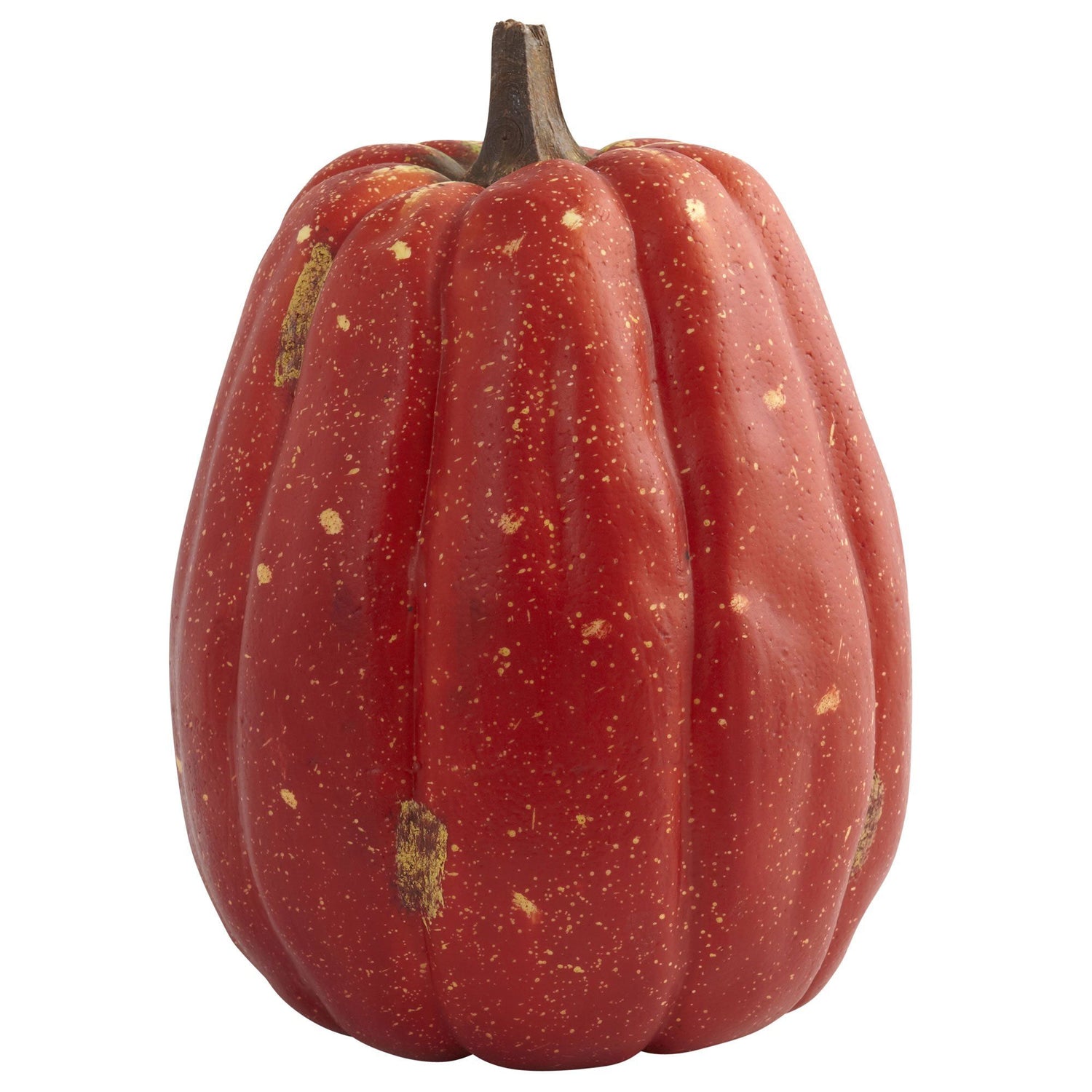 Some pumpkins are short and squat, and some are tall and regal. This one is definitely the latter. Standing a full 14" tall (and 10" wide), and colored bright orange, it has that "just picked" look that will go great on your porch, window, office lobby, or anywhere else you decorate for Halloween. The best part is, it'll never go bad, and look great year after year. Makes a fine gift as well."